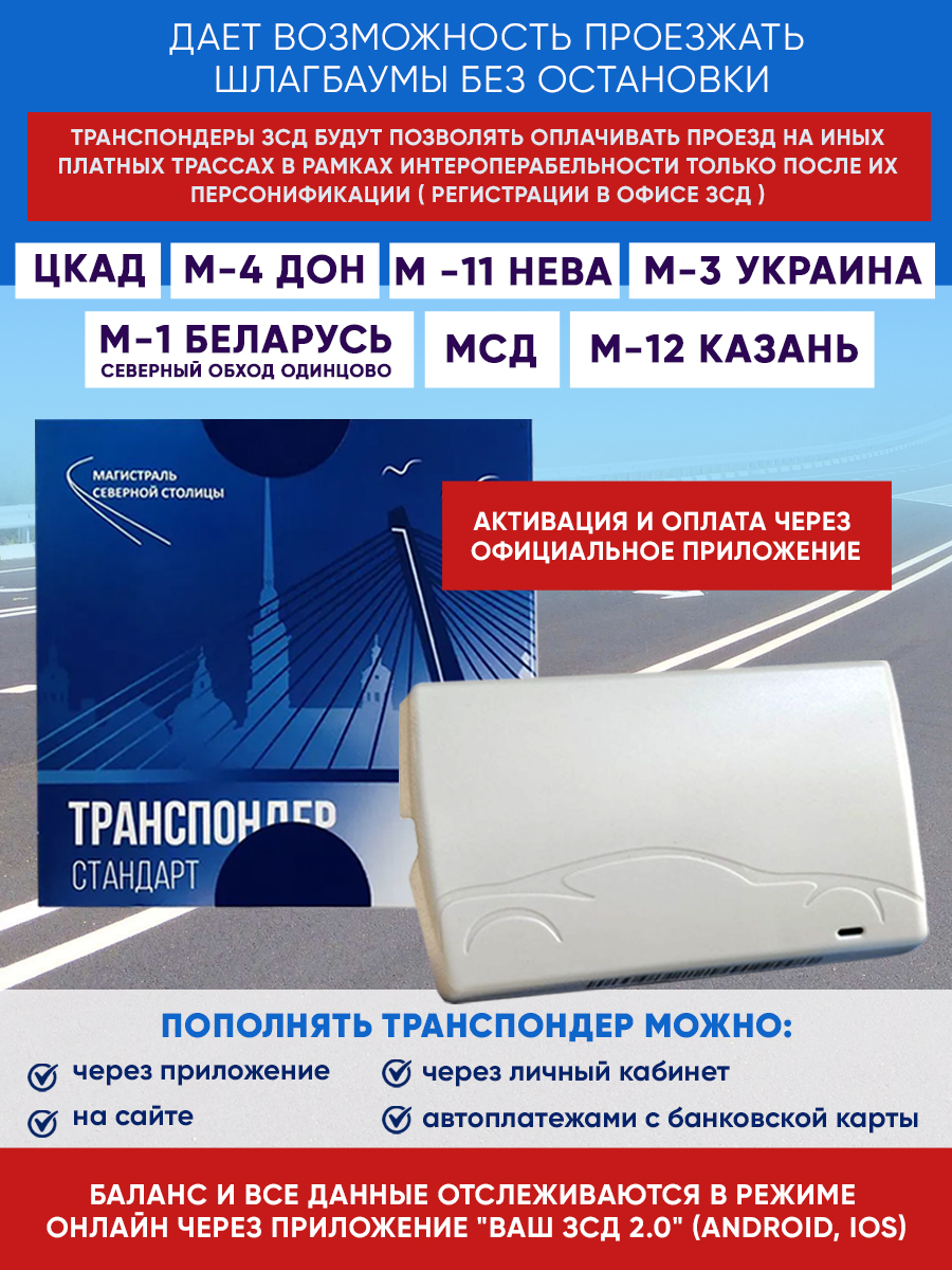 Оформите транспондер ЗСД уже сегодня на официальном сайте zsd.spb.ru и начните пользоваться всеми преимуществами безостановочного проезда с максимальной выгодой!